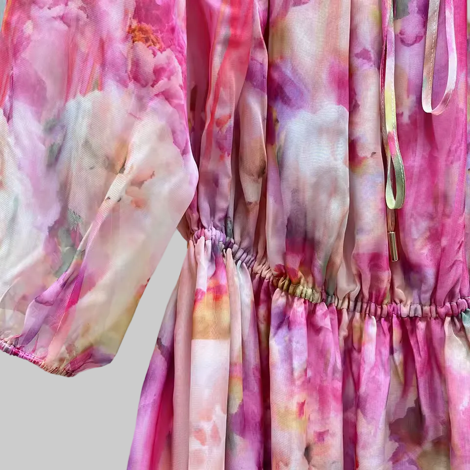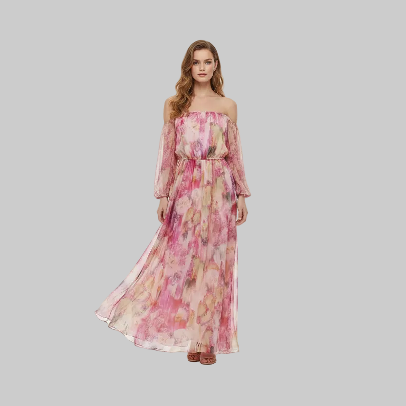 Soft, feminine, and effortlessly flowing — this watercolor floral maxi dress captures that elevated summer aesthetic your clients are looking for right now.