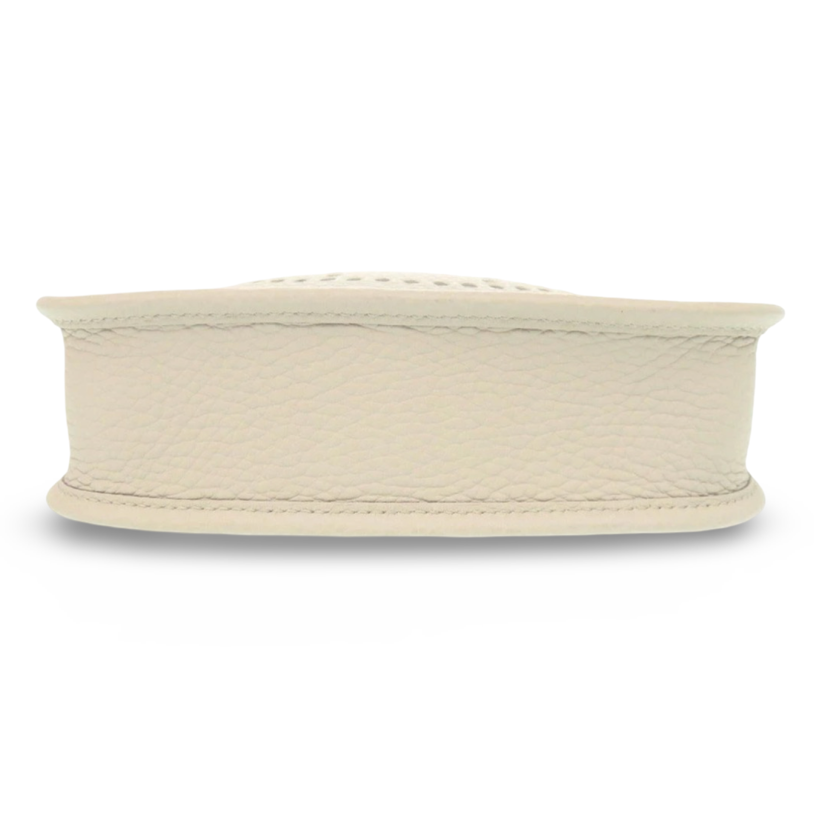The Hermès Evelyne TPM Amazon is a refined crossbody silhouette crafted in Taurillon Clemence leather and finished in the elegant Beton shade with silver-tone hardware. Compact yet highly practical, this 2025 piece offers the unmistakable perforated Hermès “H” design, a comfortable shoulder strap, and a clean structured shape that works beautifully for everyday wear. Its like new condition and complete accessory set make it an exceptional choice for collectors and clients seeking a current Hermès piece in a soft neutral tone.