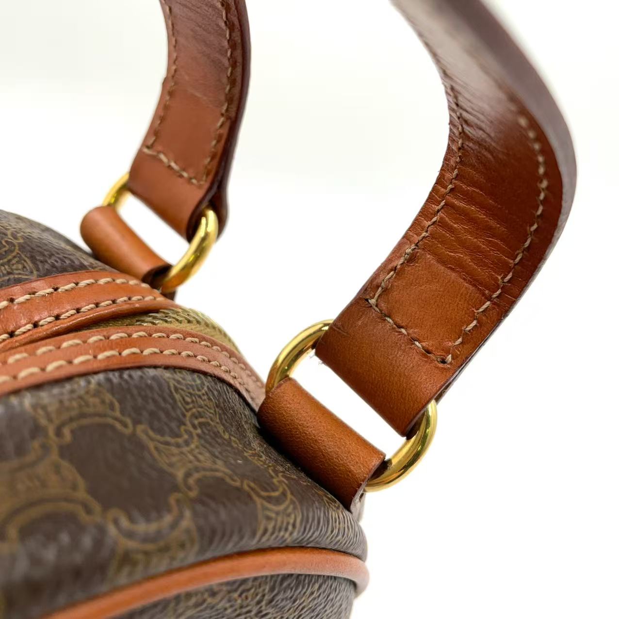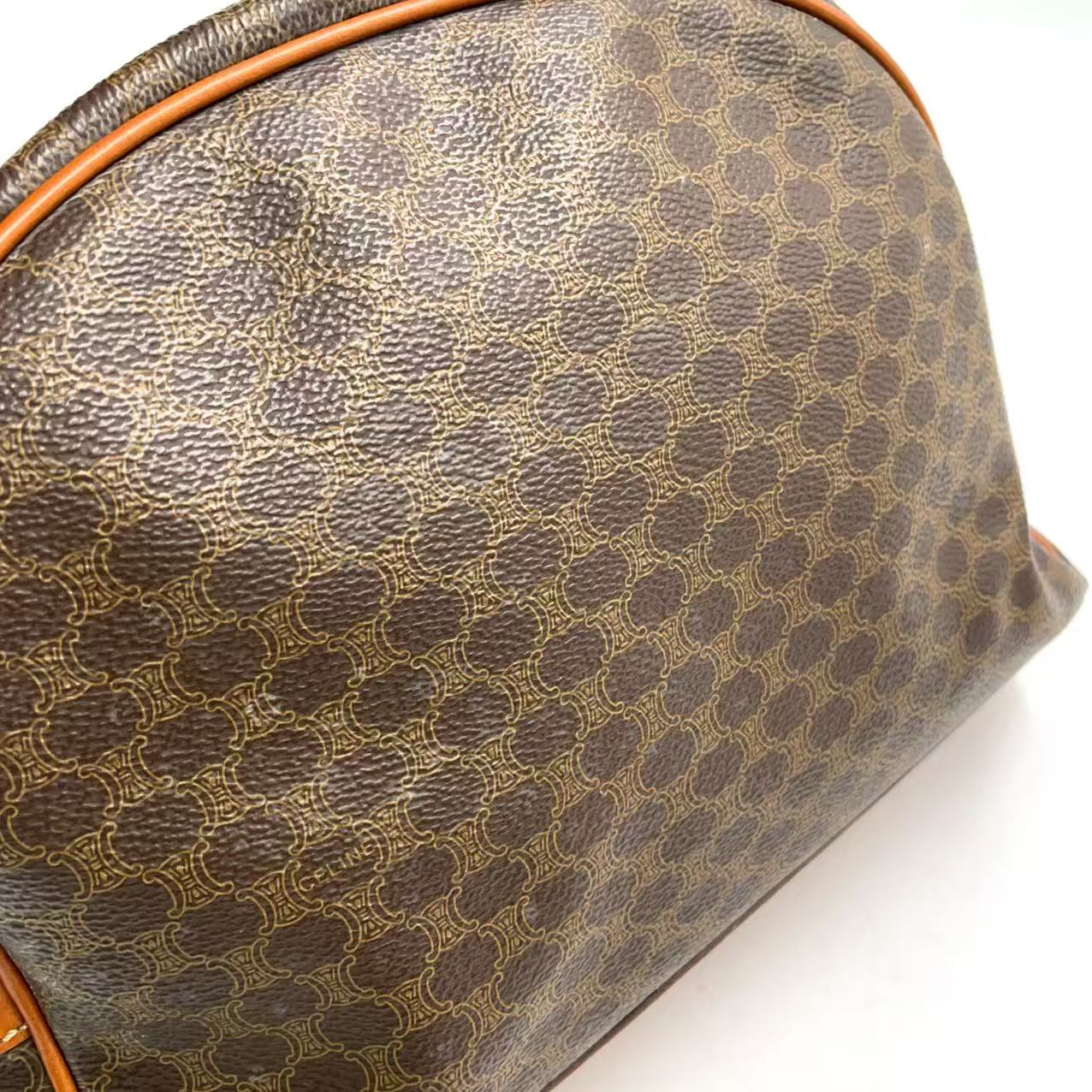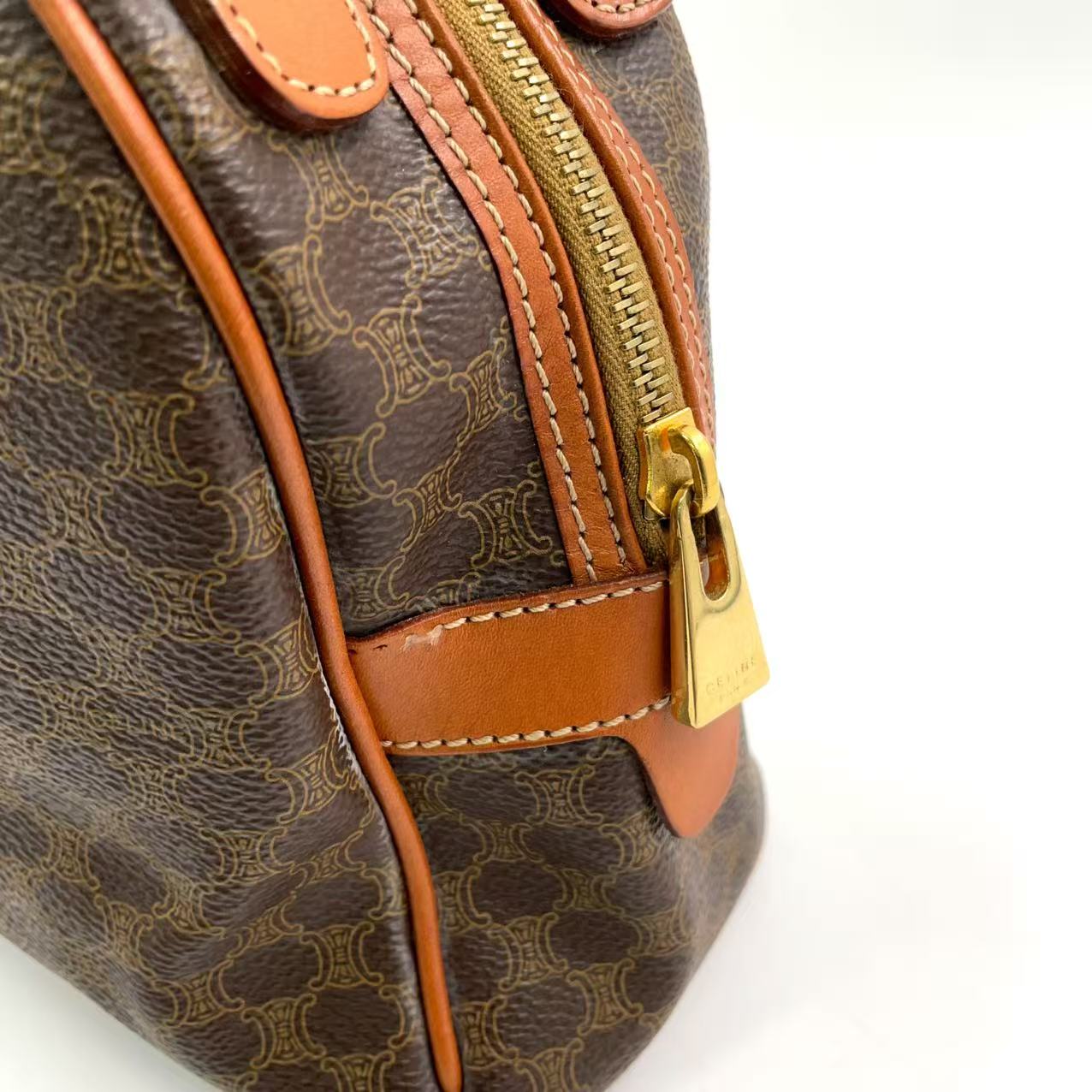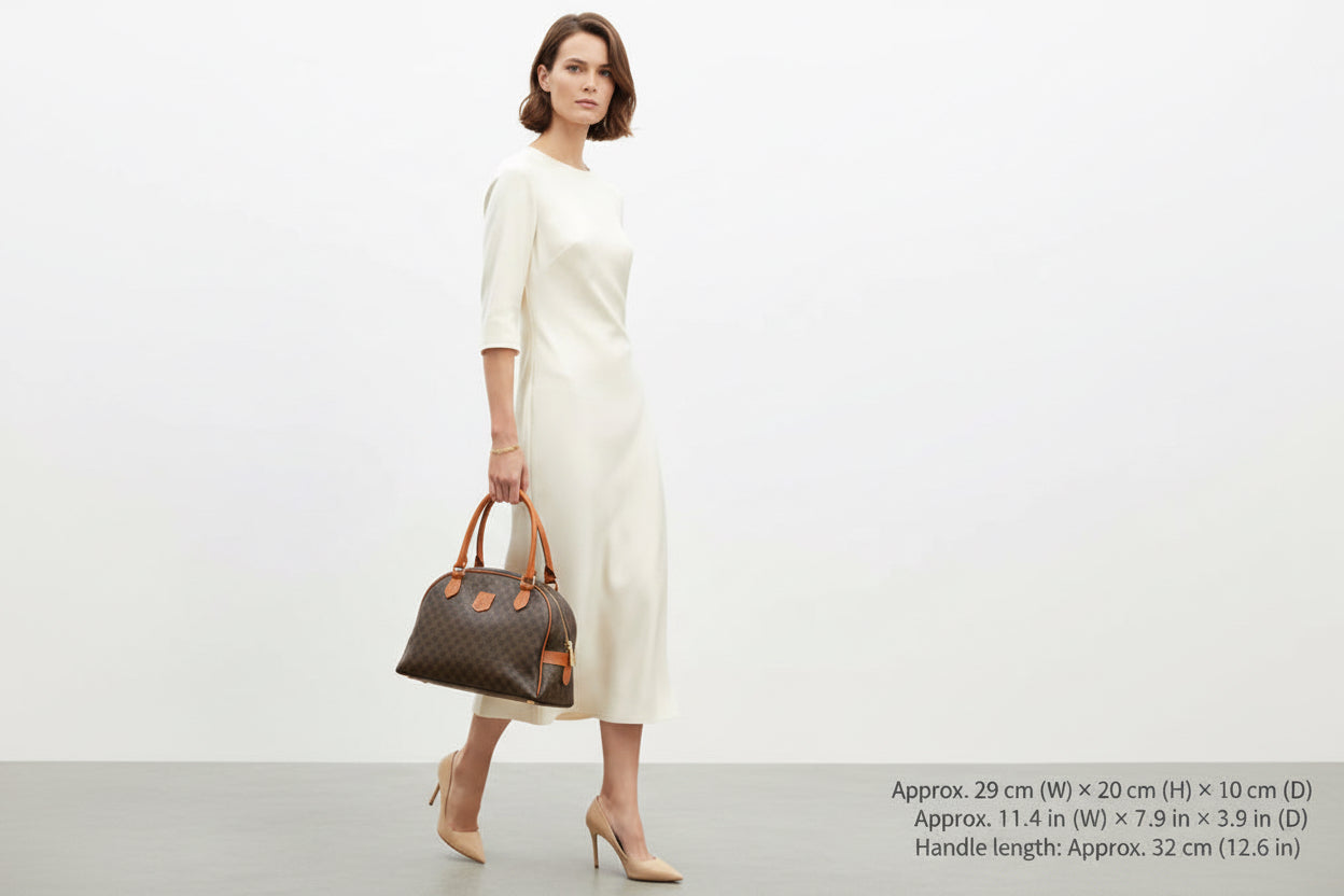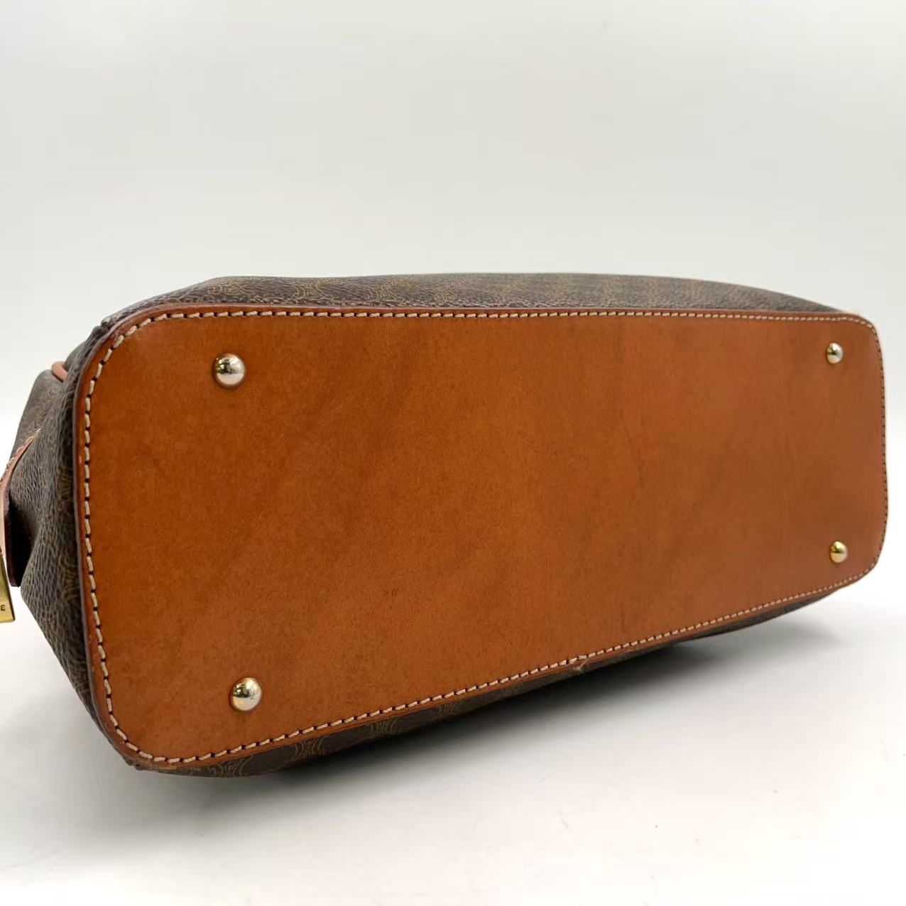 Celine Macadam Pattern Handbag crafted in signature brown and beige PVC with leather trim. This structured top-handle silhouette showcases the iconic Macadam monogram, delivering timeless heritage appeal with everyday functionality. A refined vintage-inspired piece with distinctive character, ideal for structured day wear and classic styling.