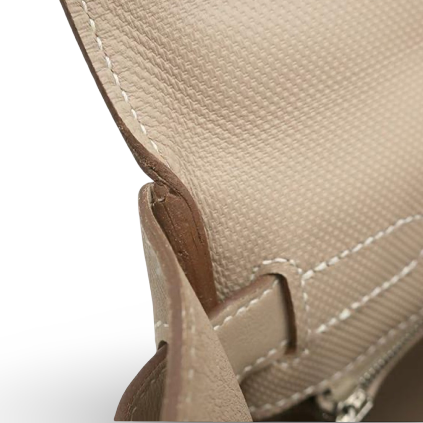 The iconic Hermès Kelly 32 Gillies is a rare reinterpretation of the classic Kelly silhouette, featuring elegant perforated detailing and refined interior stitching. Crafted from luxurious Veau Swift leather in the sophisticated Argile tone, this piece showcases Hermès craftsmanship through subtle design details and structured elegance.